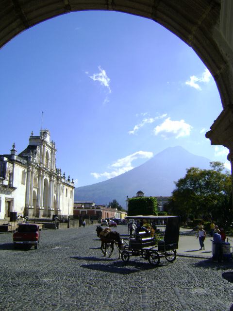 Indulásképp, a biztonság kedvéért csak egyhetes tanfolyamot választottam. Hihetetlen csomagot kínáltak: 7 éjszaka home stay (helyi családoknál leszek elszállásolva, így gyakorolva az iskolán kívül is a spanyol nyelvet), hétköznap háromszori, hétvégén kétszeri étkezéssel. Hétköznapokon napi 4 óra magántanár egy családias kis nyelviskolában az egész így együtt potom 140 dolcsiért! Lefordítva: napi 20 dolcsiért, kaja-pia, szállás, magántanár (+ napsütés, füstölgő vulkán, koloniális hangulat, mayák, kék ég, pálmafák...) Guatemala, én így szeretlek.